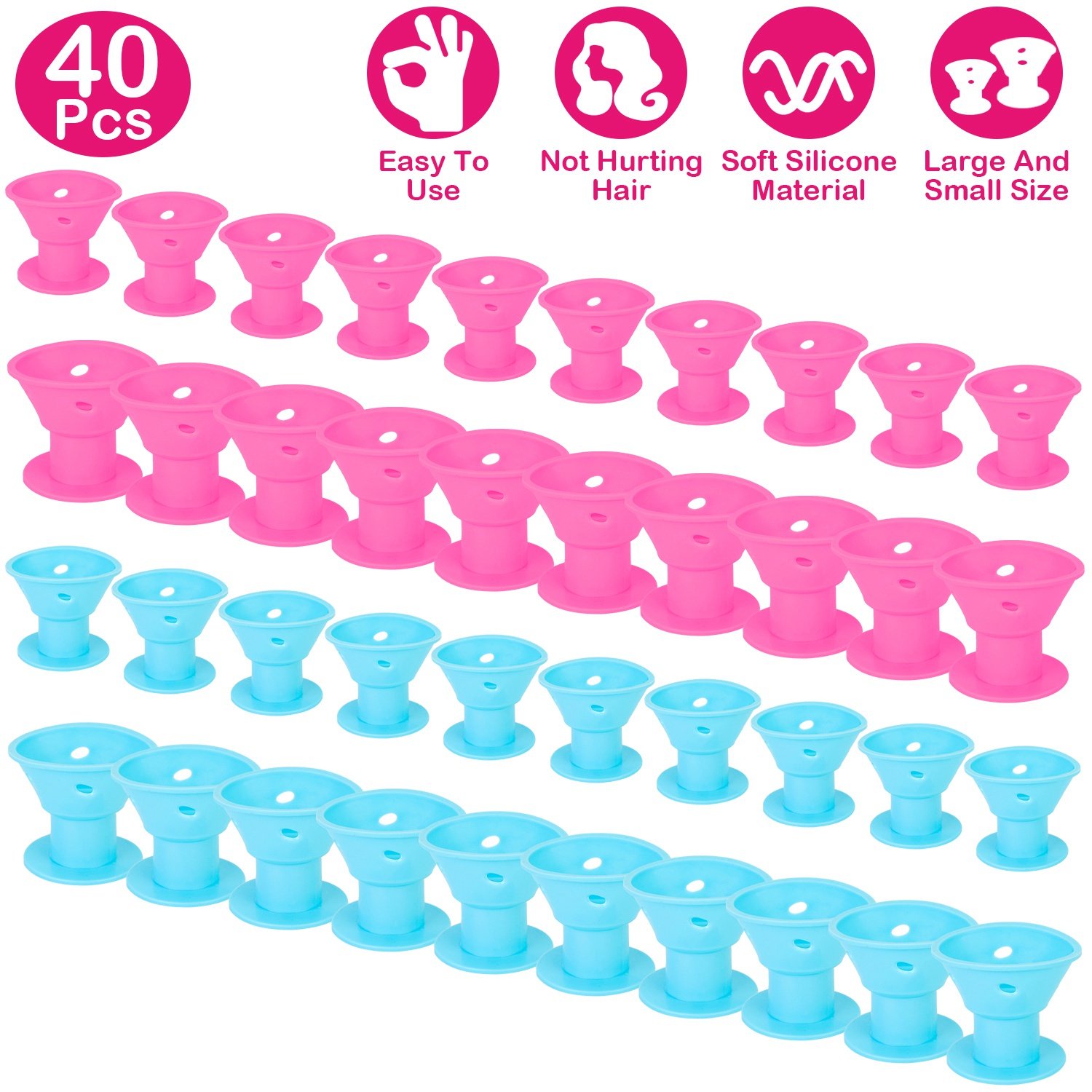 40Pcs Silicone Hair Curler Hair Roller No Heat Clip Hair Styling Tool 20x1.97in Large 20x1.57in Small Curler